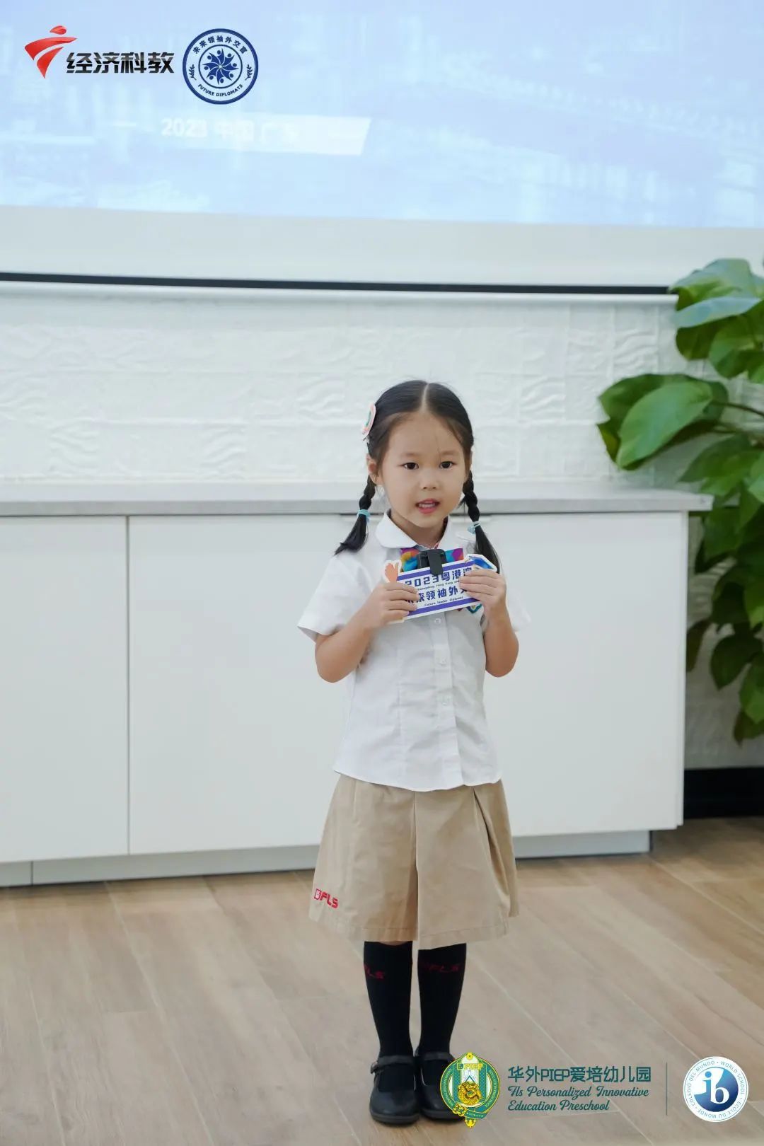 “2023粤港澳未来领袖外交官”节目组受邀来到华外PIEP爱培幼⼉园⼀起⻅证孩⼦们的精彩展⽰,⼩选⼿们凭借声情并茂的讲述、流利的⼝语表达能⼒博得了现场观众们的连连喝彩、阵阵掌声,为本次活动献上了⼀场精彩的英语视听盛宴!