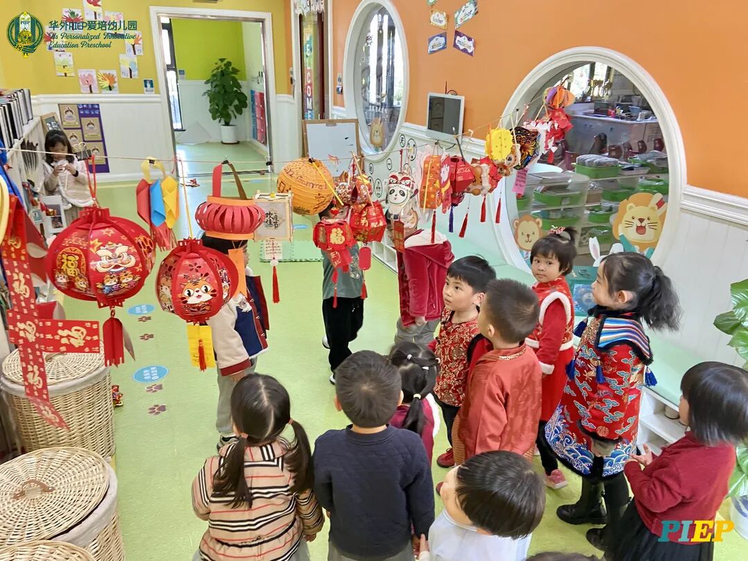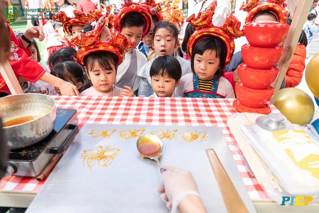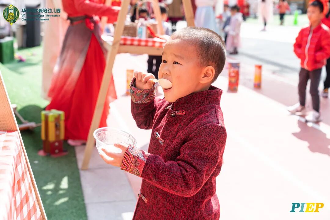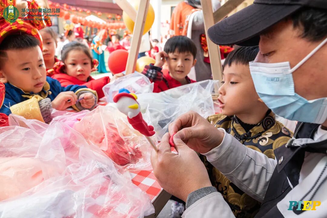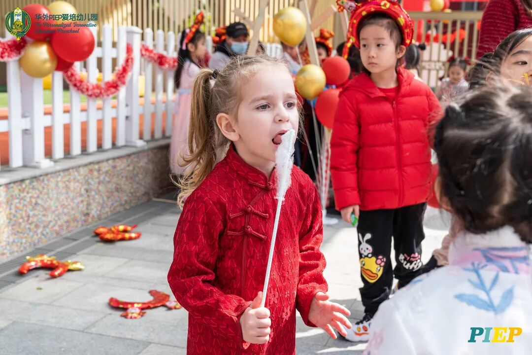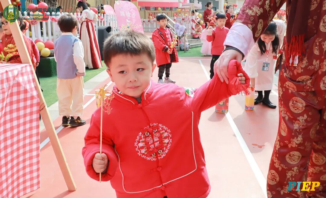 翩翩君子,粉装玉啄, 曲裾深衣,齐腰襦裙,灼灼其华。 一身汉服打扮的小华狮们 成为华外校园一道靓丽的风景线 高台狮舞前来助兴 点睛、采青、踏高台 寓意着在新的一年 小华狮们精神抖擞,成就点睛,步步高升 Yummy园长为孩子们送上元宵祝福:“……在唐代的时候,元宵即是开学,学生们的第一个节目叫“开灯”,就是把事先做好的花灯带到私塾去,请一位博学的老先生点亮,其寓意就是祝福学生拥有光明的前途,这也代表着PIEP的老师们对孩子们的殷切期望。” 响亮的锣鼓声中 舞狮拜访每个班级 给孩子们送上吉祥如意的祝福 本次庙会精心设计了丰富多彩的民俗摊位 每一个都源自中华上下五千年的深厚底蕴 摊位由PIEP多才多艺的家委们当家做主 孩子们身穿传统服饰信步闲游 穿梭在传统民俗摊位中 好似一幅“萌娃清明上河图” 一口汤圆,岁岁团圆 挥毫泼墨 吉祥的”福“字跃然纸之上 小华狮弹跳发射,翩翩裙角在风中飞扬 用已有两千多年历史的艺术 捏出时下最火热的冬奥会吉祥物 “冰墩墩Bing Dwen Dwen” 以勺为笔,以糖为墨 晶莹剔透、栩栩如生的“蟠龙”、“蝴蝶”、“冰墩墩” 拿在手上“观之若画、食之美味” 踩高跷,寓意着步步高升 一把剪刀,一张红纸 体验艺术创作带来的乐趣和成就感 毽子翻飞 踢起的是快乐的童年 挥鞭一抽 陀螺滴溜溜地旋转 快乐有时候就是这么简单 《醉翁亭记》中的“射者中,弈者胜,觥筹交错,起坐而喧哗者,众宾欢也”指的就是投壶这项投掷游戏。 软乎乎的一口甜蜜 笑开颜 孩子们沉浸在灯谜的世界中 你一言我一语地研究谜面 跃跃欲试、脑洞大开 赏花灯猜灯谜,不仅能让孩子们在玩中学会灵活思考,同时还启发他们的审美意识。 《3~6岁儿童学习与发展指南》中指出,在幼儿教育过程中,要不断融入中华传统文化内容。本次元宵庙会基于中华民俗深厚底蕴的环节设置,让孩子们在玩乐中充分调动视、听、嗅、味、触、动的多元感官体验,在欢乐的氛围中浸染传统文化的民俗风情,加深他们的民族自豪感,齐来争当做传统文化的小小践行者和传承者。 最后 特别鸣谢实力担当的家委们的付出