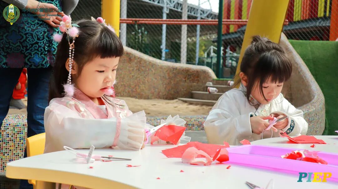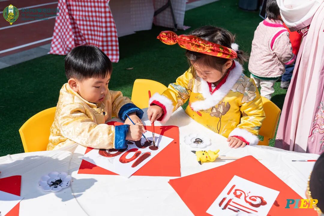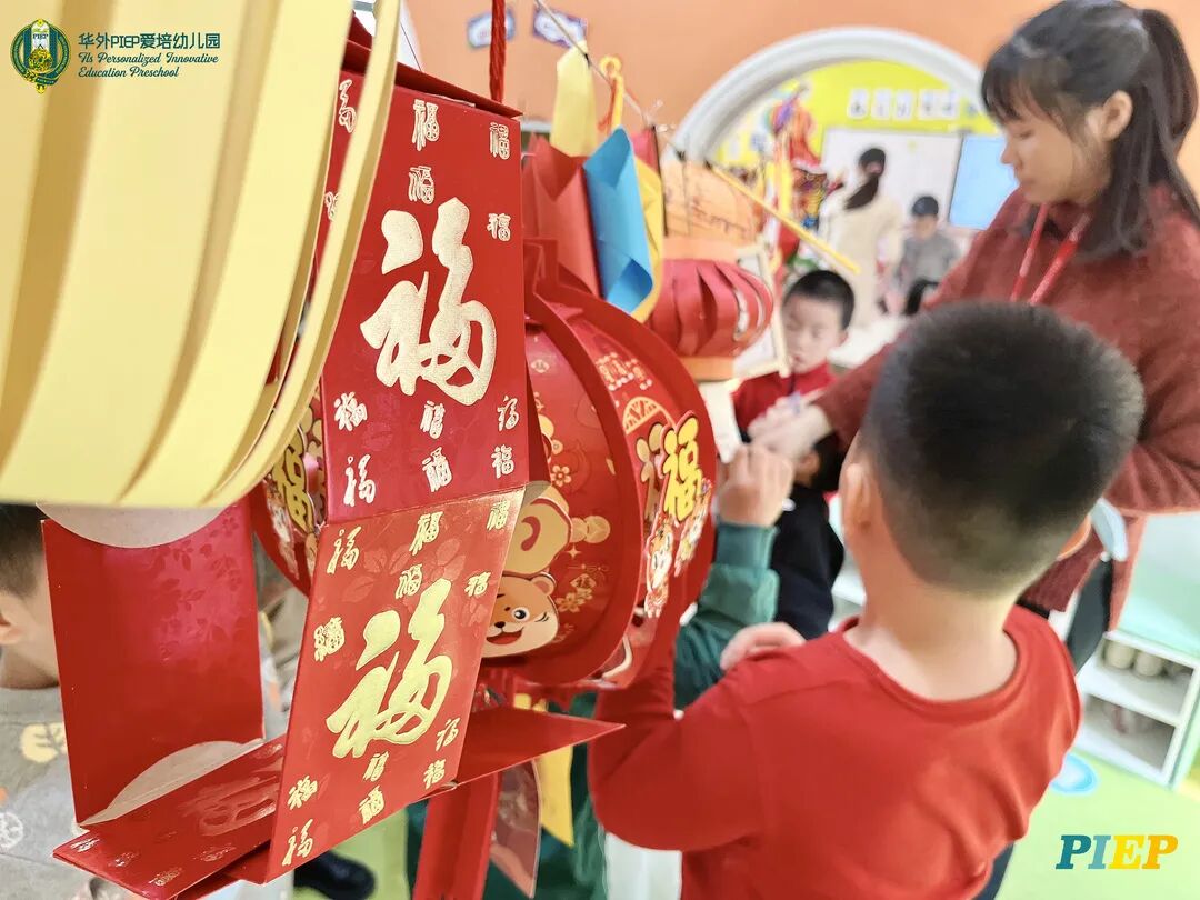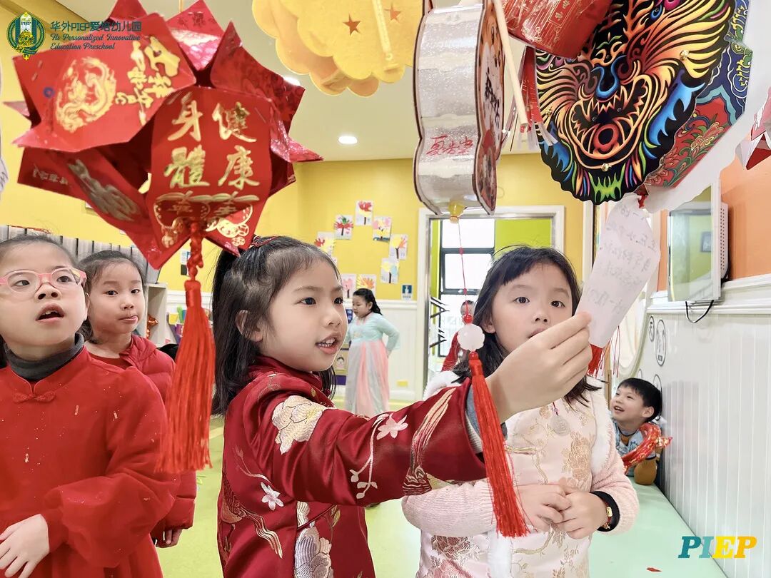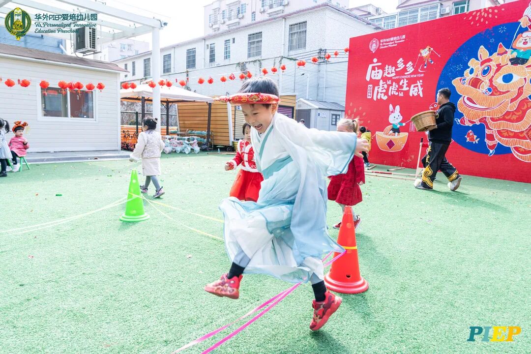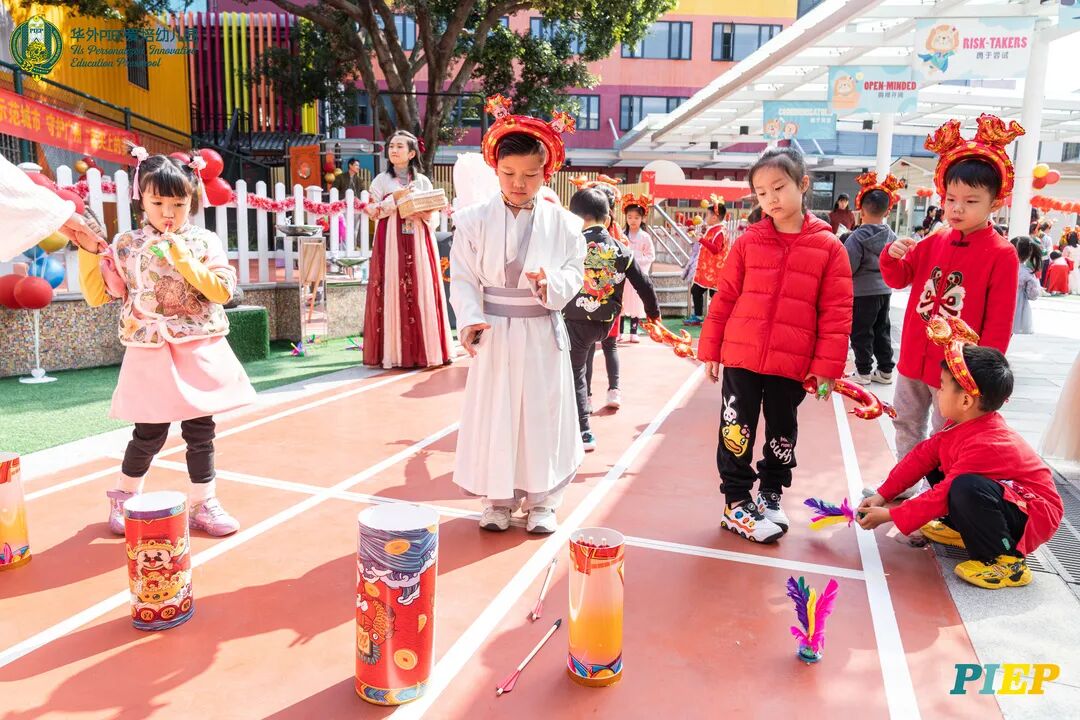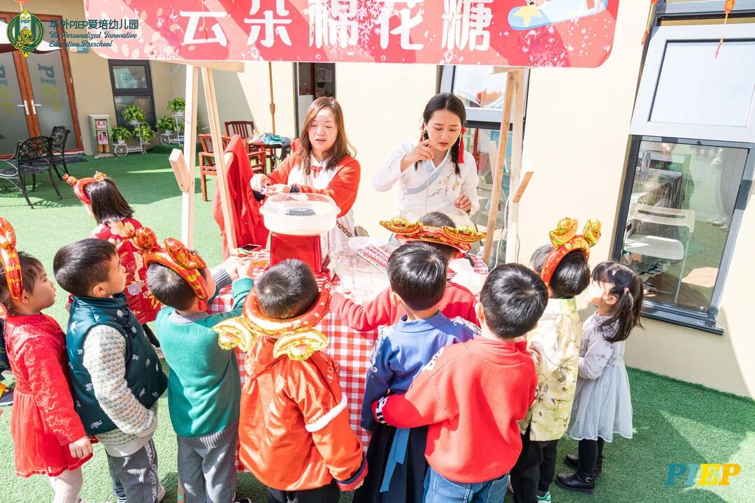 翩翩君子,粉装玉啄, 曲裾深衣,齐腰襦裙,灼灼其华。 一身汉服打扮的小华狮们 成为华外校园一道靓丽的风景线 高台狮舞前来助兴 点睛、采青、踏高台 寓意着在新的一年 小华狮们精神抖擞,成就点睛,步步高升 Yummy园长为孩子们送上元宵祝福:“……在唐代的时候,元宵即是开学,学生们的第一个节目叫“开灯”,就是把事先做好的花灯带到私塾去,请一位博学的老先生点亮,其寓意就是祝福学生拥有光明的前途,这也代表着PIEP的老师们对孩子们的殷切期望。” 响亮的锣鼓声中 舞狮拜访每个班级 给孩子们送上吉祥如意的祝福 本次庙会精心设计了丰富多彩的民俗摊位 每一个都源自中华上下五千年的深厚底蕴 摊位由PIEP多才多艺的家委们当家做主 孩子们身穿传统服饰信步闲游 穿梭在传统民俗摊位中 好似一幅“萌娃清明上河图” 一口汤圆,岁岁团圆 挥毫泼墨 吉祥的”福“字跃然纸之上 小华狮弹跳发射,翩翩裙角在风中飞扬 用已有两千多年历史的艺术 捏出时下最火热的冬奥会吉祥物 “冰墩墩Bing Dwen Dwen” 以勺为笔,以糖为墨 晶莹剔透、栩栩如生的“蟠龙”、“蝴蝶”、“冰墩墩” 拿在手上“观之若画、食之美味” 踩高跷,寓意着步步高升 一把剪刀,一张红纸 体验艺术创作带来的乐趣和成就感 毽子翻飞 踢起的是快乐的童年 挥鞭一抽 陀螺滴溜溜地旋转 快乐有时候就是这么简单 《醉翁亭记》中的“射者中,弈者胜,觥筹交错,起坐而喧哗者,众宾欢也”指的就是投壶这项投掷游戏。 软乎乎的一口甜蜜 笑开颜 孩子们沉浸在灯谜的世界中 你一言我一语地研究谜面 跃跃欲试、脑洞大开 赏花灯猜灯谜,不仅能让孩子们在玩中学会灵活思考,同时还启发他们的审美意识。 《3~6岁儿童学习与发展指南》中指出,在幼儿教育过程中,要不断融入中华传统文化内容。本次元宵庙会基于中华民俗深厚底蕴的环节设置,让孩子们在玩乐中充分调动视、听、嗅、味、触、动的多元感官体验,在欢乐的氛围中浸染传统文化的民俗风情,加深他们的民族自豪感,齐来争当做传统文化的小小践行者和传承者。 最后 特别鸣谢实力担当的家委们的付出