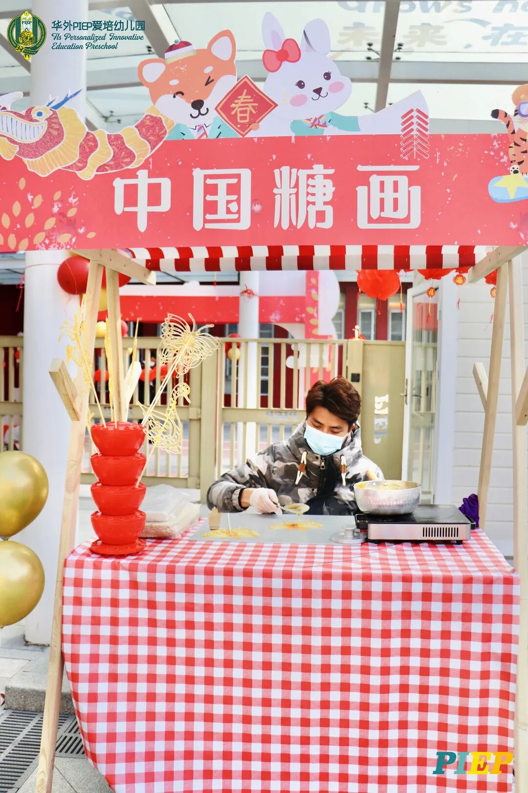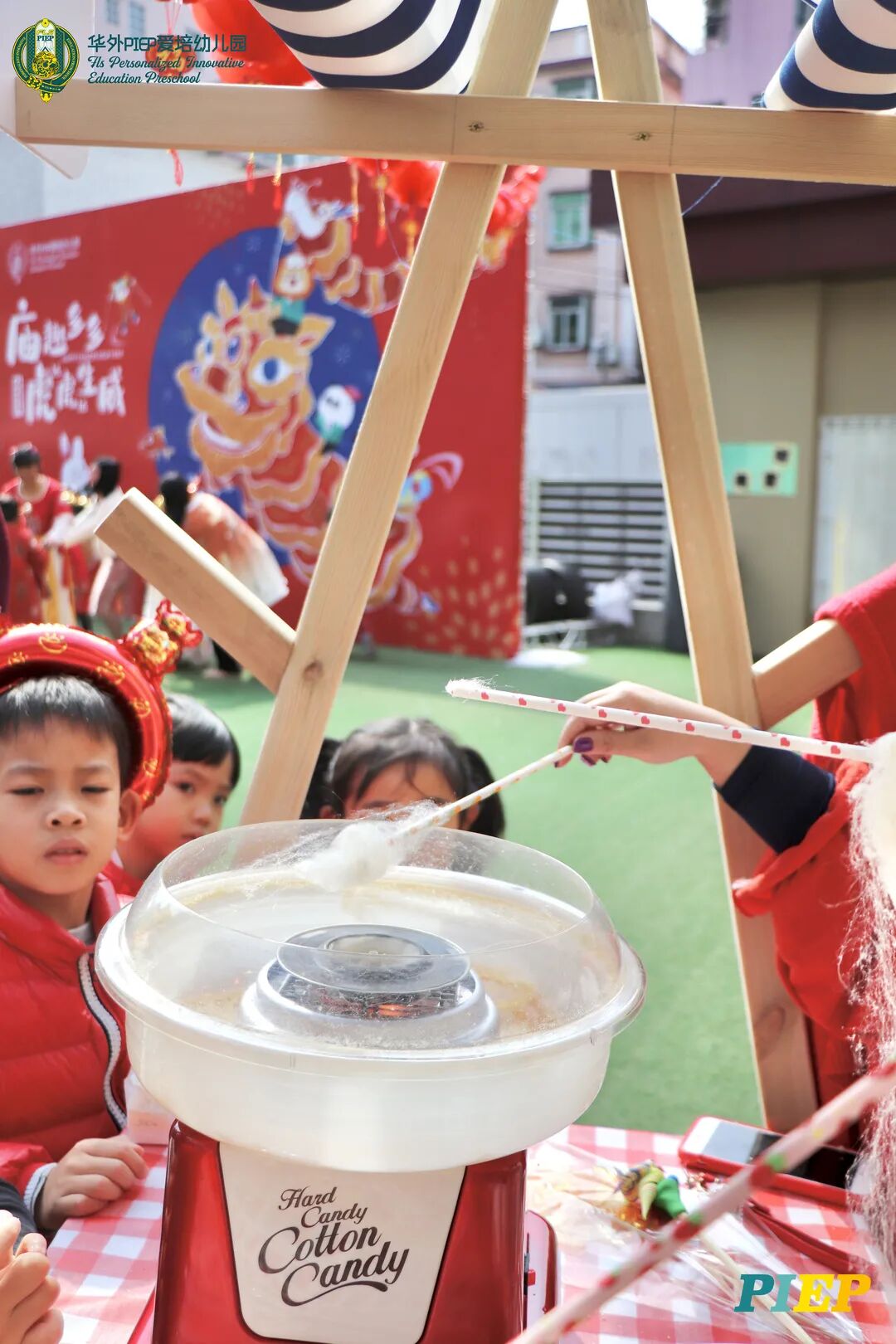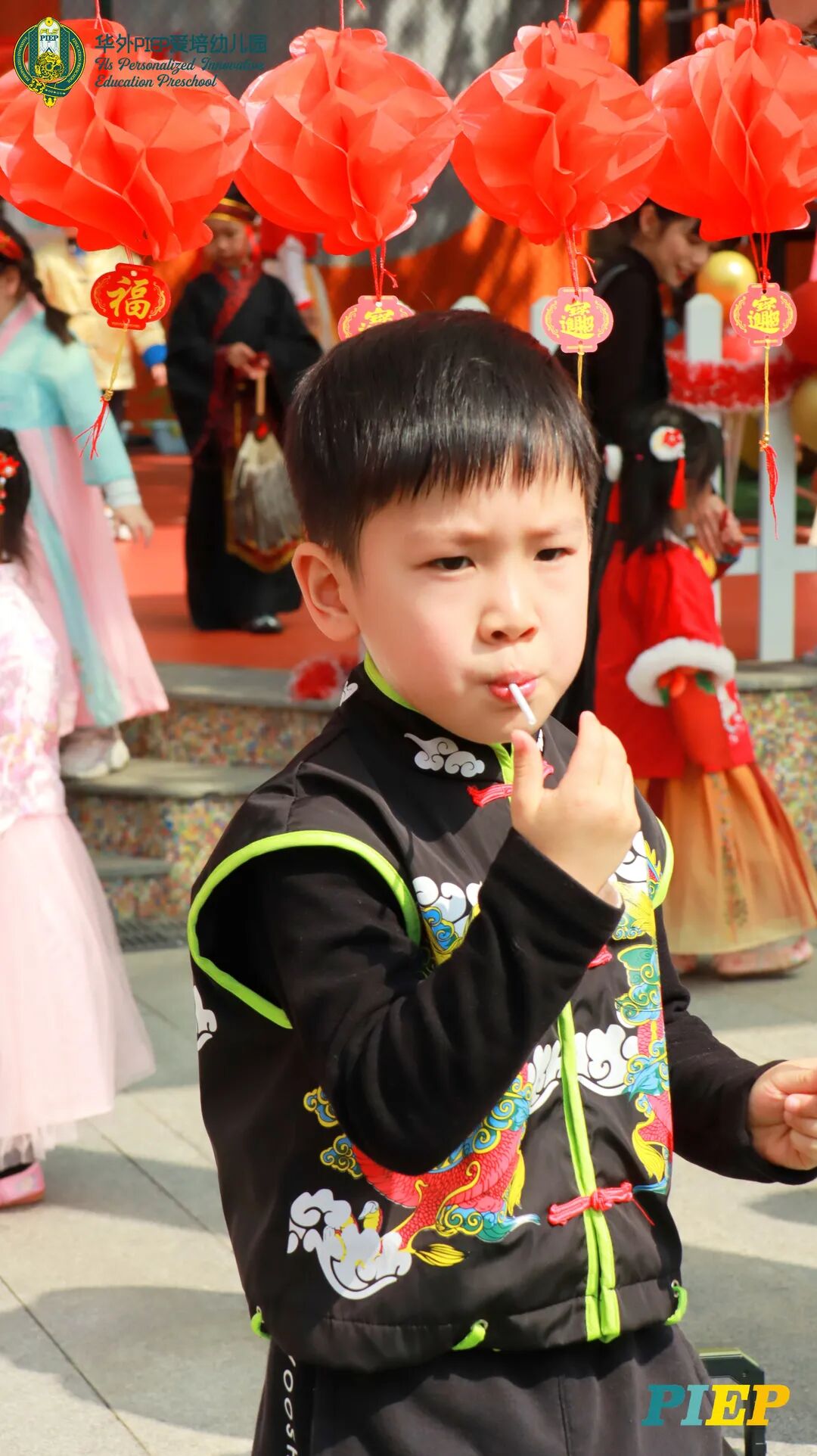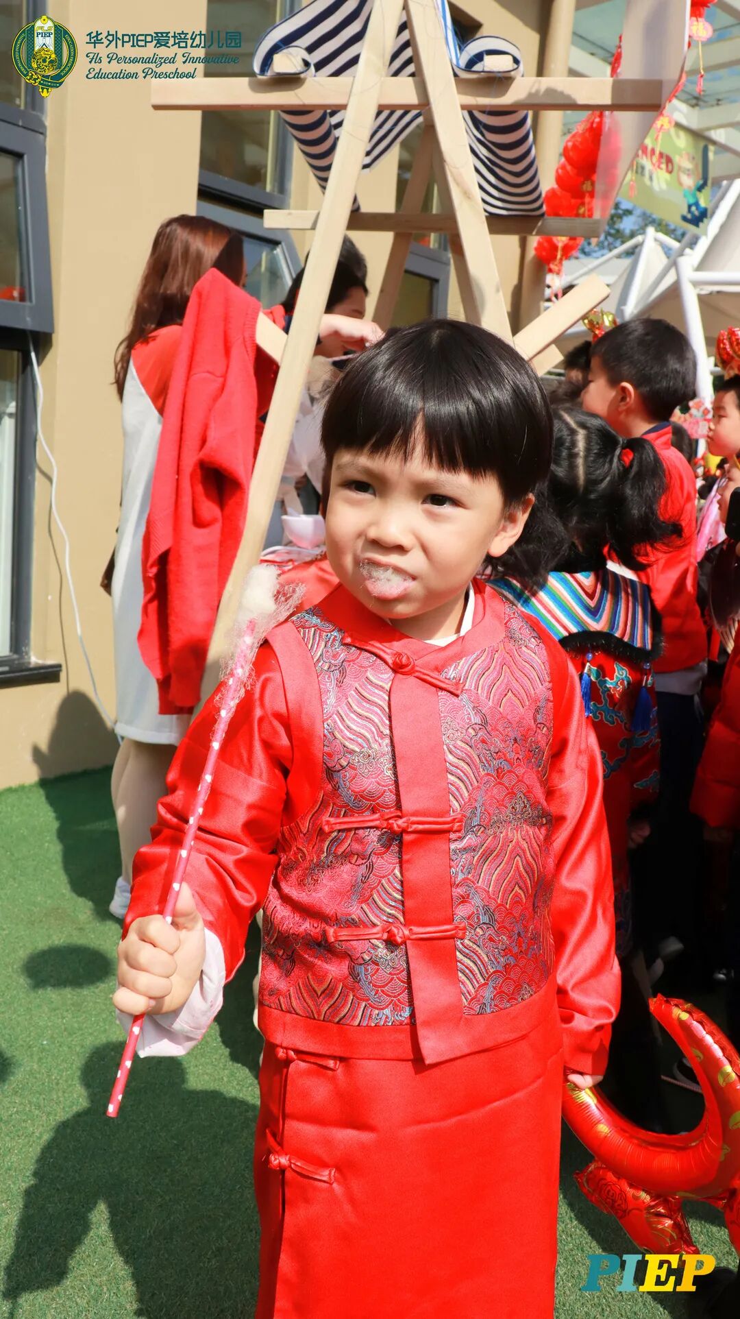 翩翩君子,粉装玉啄, 曲裾深衣,齐腰襦裙,灼灼其华。 一身汉服打扮的小华狮们 成为华外校园一道靓丽的风景线 高台狮舞前来助兴 点睛、采青、踏高台 寓意着在新的一年 小华狮们精神抖擞,成就点睛,步步高升 Yummy园长为孩子们送上元宵祝福:“……在唐代的时候,元宵即是开学,学生们的第一个节目叫“开灯”,就是把事先做好的花灯带到私塾去,请一位博学的老先生点亮,其寓意就是祝福学生拥有光明的前途,这也代表着PIEP的老师们对孩子们的殷切期望。” 响亮的锣鼓声中 舞狮拜访每个班级 给孩子们送上吉祥如意的祝福 本次庙会精心设计了丰富多彩的民俗摊位 每一个都源自中华上下五千年的深厚底蕴 摊位由PIEP多才多艺的家委们当家做主 孩子们身穿传统服饰信步闲游 穿梭在传统民俗摊位中 好似一幅“萌娃清明上河图” 一口汤圆,岁岁团圆 挥毫泼墨 吉祥的”福“字跃然纸之上 小华狮弹跳发射,翩翩裙角在风中飞扬 用已有两千多年历史的艺术 捏出时下最火热的冬奥会吉祥物 “冰墩墩Bing Dwen Dwen” 以勺为笔,以糖为墨 晶莹剔透、栩栩如生的“蟠龙”、“蝴蝶”、“冰墩墩” 拿在手上“观之若画、食之美味” 踩高跷,寓意着步步高升 一把剪刀,一张红纸 体验艺术创作带来的乐趣和成就感 毽子翻飞 踢起的是快乐的童年 挥鞭一抽 陀螺滴溜溜地旋转 快乐有时候就是这么简单 《醉翁亭记》中的“射者中,弈者胜,觥筹交错,起坐而喧哗者,众宾欢也”指的就是投壶这项投掷游戏。 软乎乎的一口甜蜜 笑开颜 孩子们沉浸在灯谜的世界中 你一言我一语地研究谜面 跃跃欲试、脑洞大开 赏花灯猜灯谜,不仅能让孩子们在玩中学会灵活思考,同时还启发他们的审美意识。 《3~6岁儿童学习与发展指南》中指出,在幼儿教育过程中,要不断融入中华传统文化内容。本次元宵庙会基于中华民俗深厚底蕴的环节设置,让孩子们在玩乐中充分调动视、听、嗅、味、触、动的多元感官体验,在欢乐的氛围中浸染传统文化的民俗风情,加深他们的民族自豪感,齐来争当做传统文化的小小践行者和传承者。 最后 特别鸣谢实力担当的家委们的付出