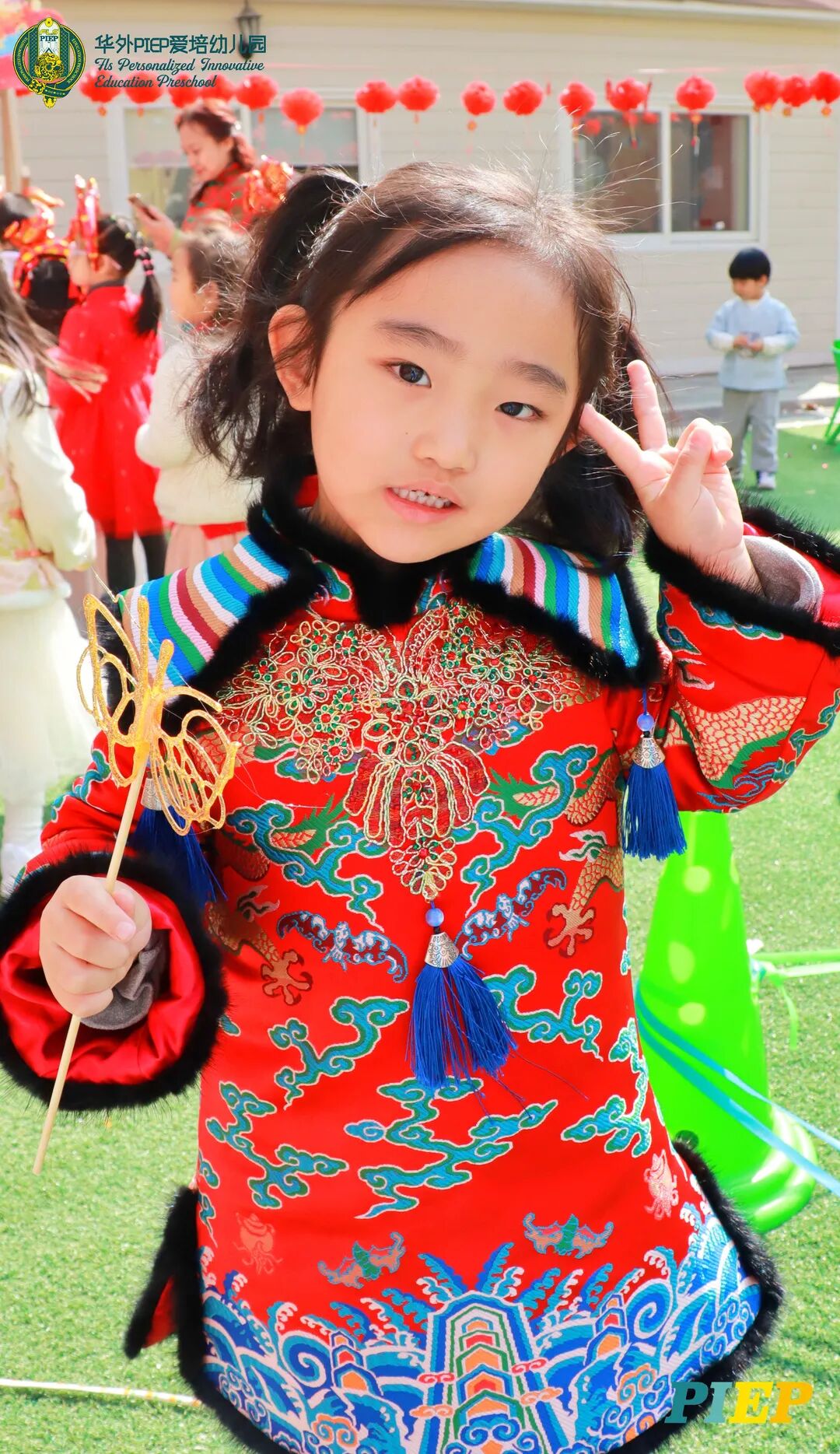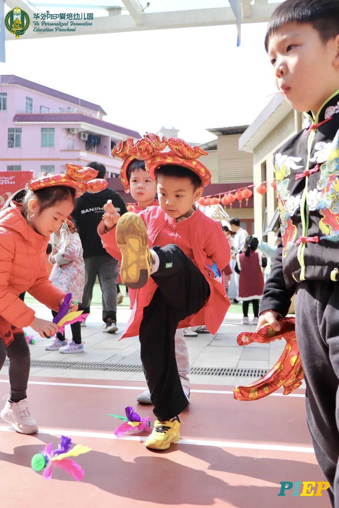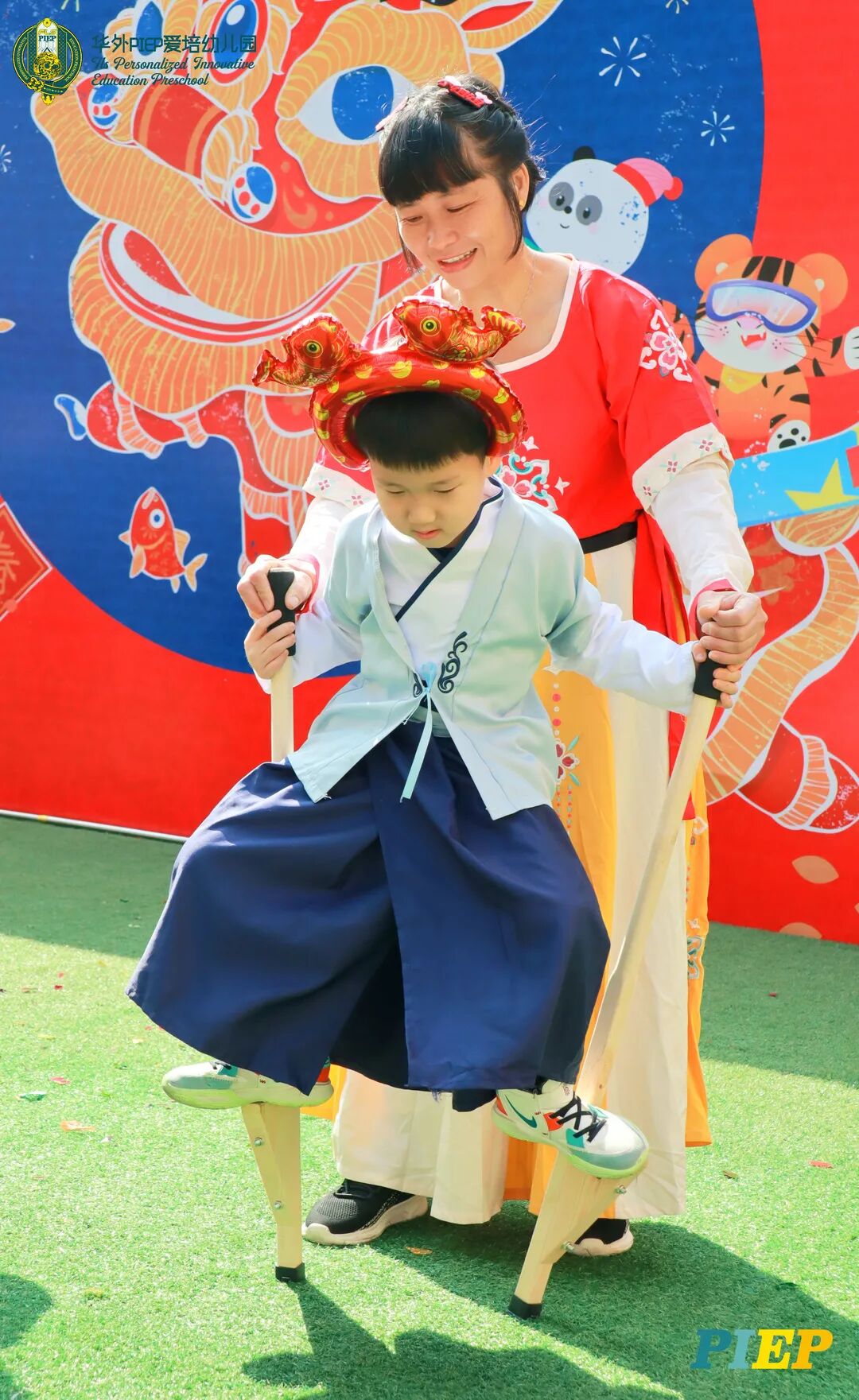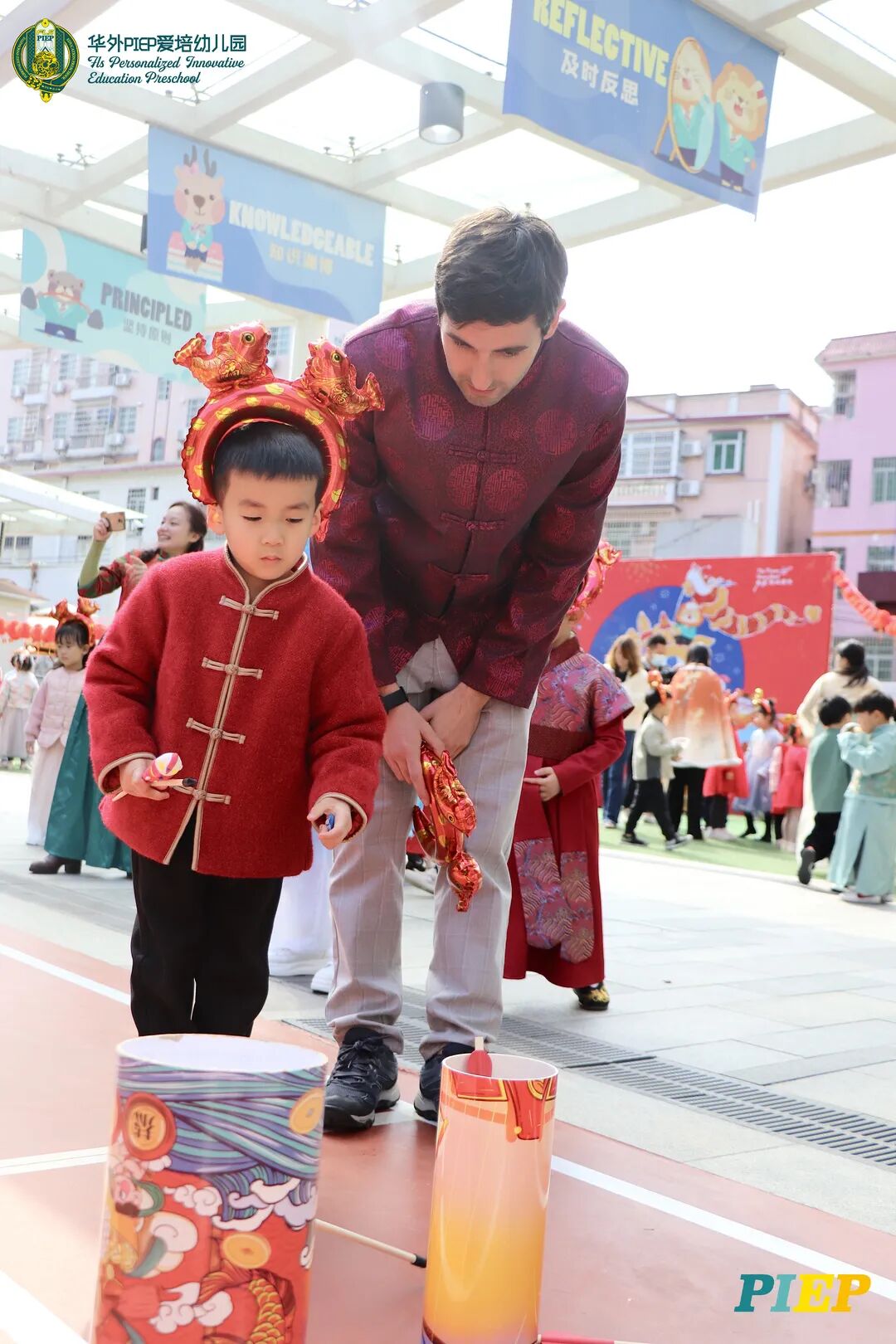 翩翩君子,粉装玉啄, 曲裾深衣,齐腰襦裙,灼灼其华。 一身汉服打扮的小华狮们 成为华外校园一道靓丽的风景线 高台狮舞前来助兴 点睛、采青、踏高台 寓意着在新的一年 小华狮们精神抖擞,成就点睛,步步高升 Yummy园长为孩子们送上元宵祝福:“……在唐代的时候,元宵即是开学,学生们的第一个节目叫“开灯”,就是把事先做好的花灯带到私塾去,请一位博学的老先生点亮,其寓意就是祝福学生拥有光明的前途,这也代表着PIEP的老师们对孩子们的殷切期望。” 响亮的锣鼓声中 舞狮拜访每个班级 给孩子们送上吉祥如意的祝福 本次庙会精心设计了丰富多彩的民俗摊位 每一个都源自中华上下五千年的深厚底蕴 摊位由PIEP多才多艺的家委们当家做主 孩子们身穿传统服饰信步闲游 穿梭在传统民俗摊位中 好似一幅“萌娃清明上河图” 一口汤圆,岁岁团圆 挥毫泼墨 吉祥的”福“字跃然纸之上 小华狮弹跳发射,翩翩裙角在风中飞扬 用已有两千多年历史的艺术 捏出时下最火热的冬奥会吉祥物 “冰墩墩Bing Dwen Dwen” 以勺为笔,以糖为墨 晶莹剔透、栩栩如生的“蟠龙”、“蝴蝶”、“冰墩墩” 拿在手上“观之若画、食之美味” 踩高跷,寓意着步步高升 一把剪刀,一张红纸 体验艺术创作带来的乐趣和成就感 毽子翻飞 踢起的是快乐的童年 挥鞭一抽 陀螺滴溜溜地旋转 快乐有时候就是这么简单 《醉翁亭记》中的“射者中,弈者胜,觥筹交错,起坐而喧哗者,众宾欢也”指的就是投壶这项投掷游戏。 软乎乎的一口甜蜜 笑开颜 孩子们沉浸在灯谜的世界中 你一言我一语地研究谜面 跃跃欲试、脑洞大开 赏花灯猜灯谜,不仅能让孩子们在玩中学会灵活思考,同时还启发他们的审美意识。 《3~6岁儿童学习与发展指南》中指出,在幼儿教育过程中,要不断融入中华传统文化内容。本次元宵庙会基于中华民俗深厚底蕴的环节设置,让孩子们在玩乐中充分调动视、听、嗅、味、触、动的多元感官体验,在欢乐的氛围中浸染传统文化的民俗风情,加深他们的民族自豪感,齐来争当做传统文化的小小践行者和传承者。 最后 特别鸣谢实力担当的家委们的付出