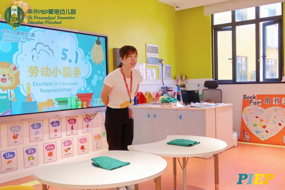 中大班孩子的难度则有所升级:整理被子、书包、扫地。