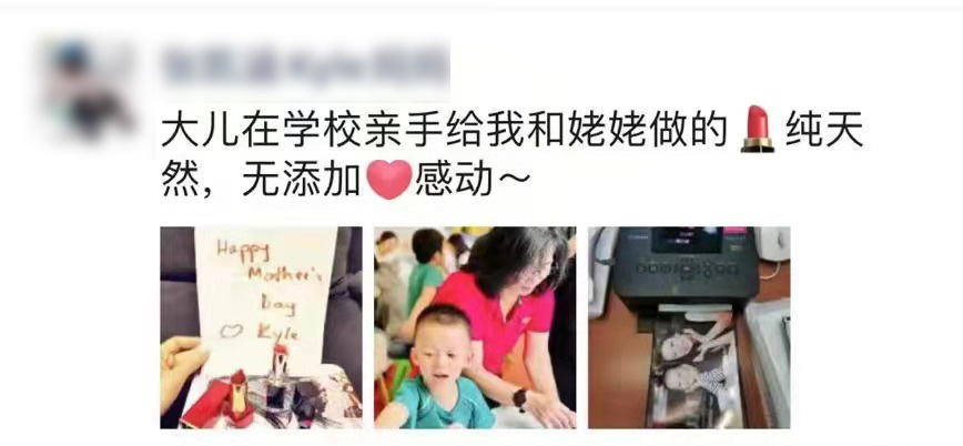在老师的指导及妈妈的帮助下,独一无二的、妈妈定制牌口红、香皂就此诞生,口红拿到手后,孩子们迫不及待地帮妈妈涂抹口红,当了一回妈妈的专属化妆师。