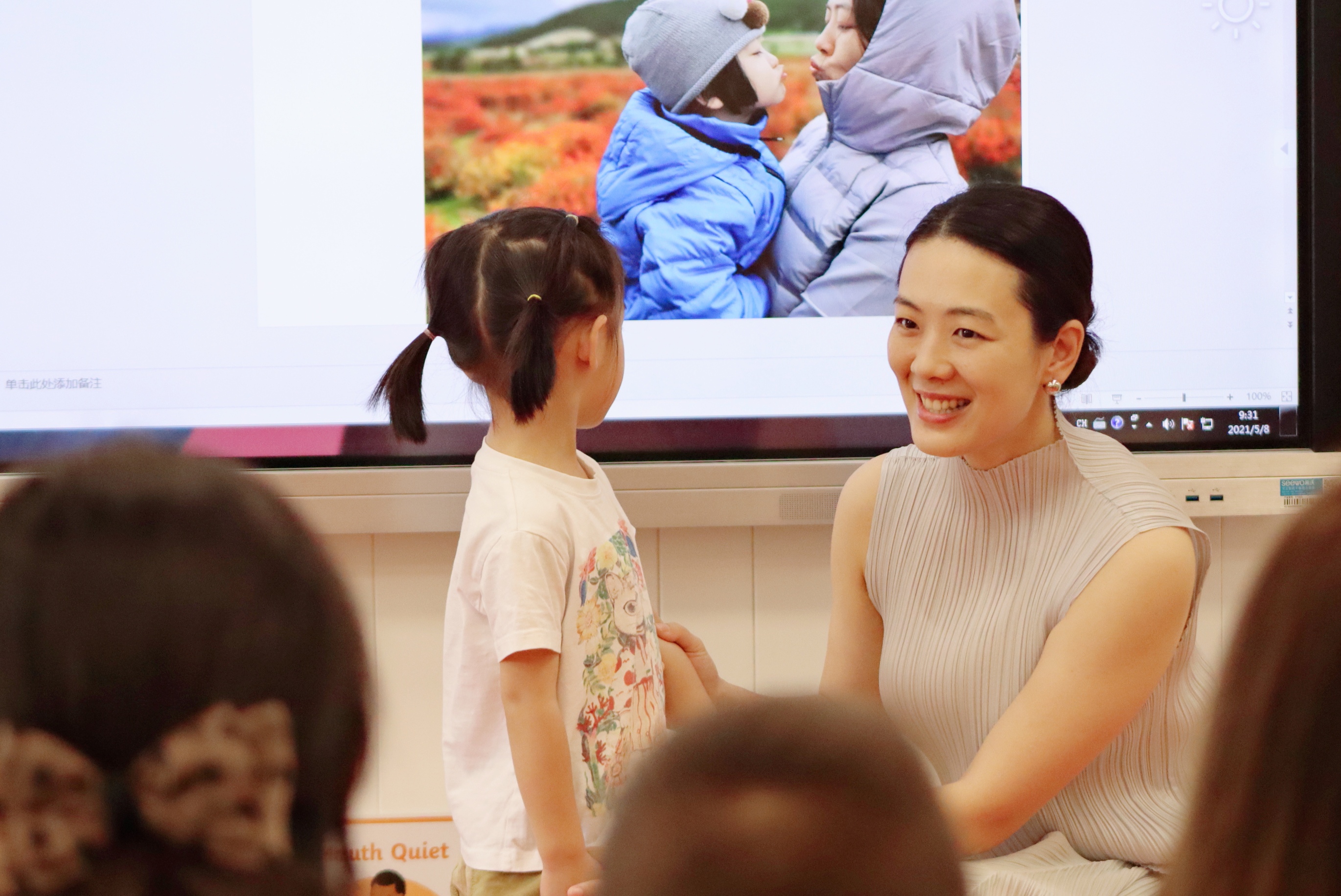 孩子们对“我们从哪里来”有着强烈的好奇心,小中班的妈妈们特意挑选了图文并茂的绘本,用生动的讲述让孩子们知道自己是从哪里来的。