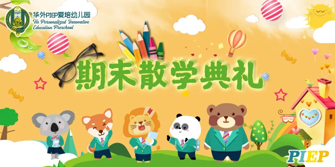 7.9我们迎来孩子们快乐假期,“暑”你最行散学活动。老师们精心准备一场充满仪式感的散学典礼,为孩子们在PIEP的学习和生活画上了一个圆满的句号。 我们将要挥手告别这学期,老师和小朋友们要短暂的分别一段时间,在这个暑假,我们要怎么样才能过得更充实呢,yummy园长有很多话想跟我们小朋友说噢~ Cary老师不仅人帅,声音、歌声婉转动听,让人赞不绝口,台下的小观众看得津津有味。 为确保孩子们在假期里度过一个平安、快乐的假期,提高小朋友的暑假安全意识和自我保护防范意识,安全队长给孩子们进行假期安全我知道知识。 PIEP作为一所IB候选世界学校,十大培养目标是学习者目标里所有学习项目的核心,作为国际文凭学习者,我们要努力做到:勤于思考,积极探究,善于交流,勇于尝试,坚持原则,及时反思,全面发展,知识渊博,懂得关爱,胸襟开阔。孩子家长老师三方协同合作,积极进取,完成这一学期的学习目标。为了鼓励孩子们,每个孩子都获得了一份专属于他们的独特的奖励,每一张奖励不仅包含着老师对孩子的肯定与欣赏,更附着浓厚的爱意和祝福。 我们爱学习,也爱美食。美育教育一向是PIEP的主张和持之以恒的教育方向。美,是一种无形的感受,听,嗅,看,摸,尝各种感官的完全开放,美好在孩子们的心底慢慢地滋养,生长。盛夏时节,绿草如茵,鲜花烂漫,在此不可错过的美好时节,一场别致的美味自助餐,温馨的环境之中,快乐的进餐氛围:美味、礼仪、自主、成长、分享…美好尽在其中。 孩子们亲水,与生俱来的无法抗拒,源自于母亲十个月的孕育,于是,就有了后来的不玩水,不童年。。。。 左右滑动查看更多精彩 左右滑动查看更多精彩 左右滑动查看更多精彩 左右滑动查看更多精彩 左右滑动查看更多精彩 左右滑动查看更多精彩 左右滑动查看更多精彩 本学期的美好生活,在孩子们的欢声笑语中缓缓落下帷幕,在这欢声笑语中 我们感受到了来自童真世界的幸福快乐。愿孩子们在PIEP温暖之家,永远保持着这份喜悦健康成长,让我们共同期待孩子们在新的一学期,有更大的进步、更多的惊喜。 最后祝大家暑假快乐! 文 | Kiki