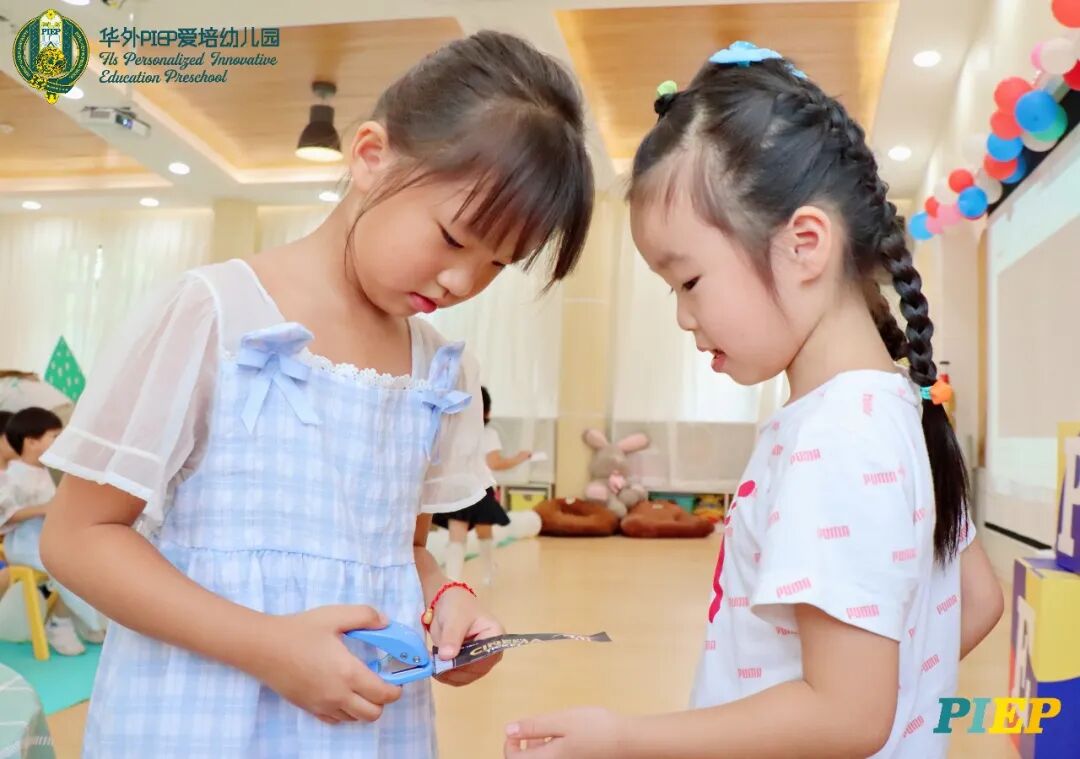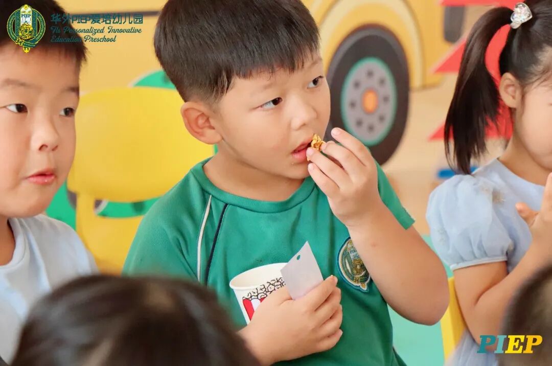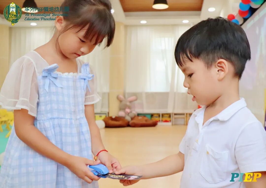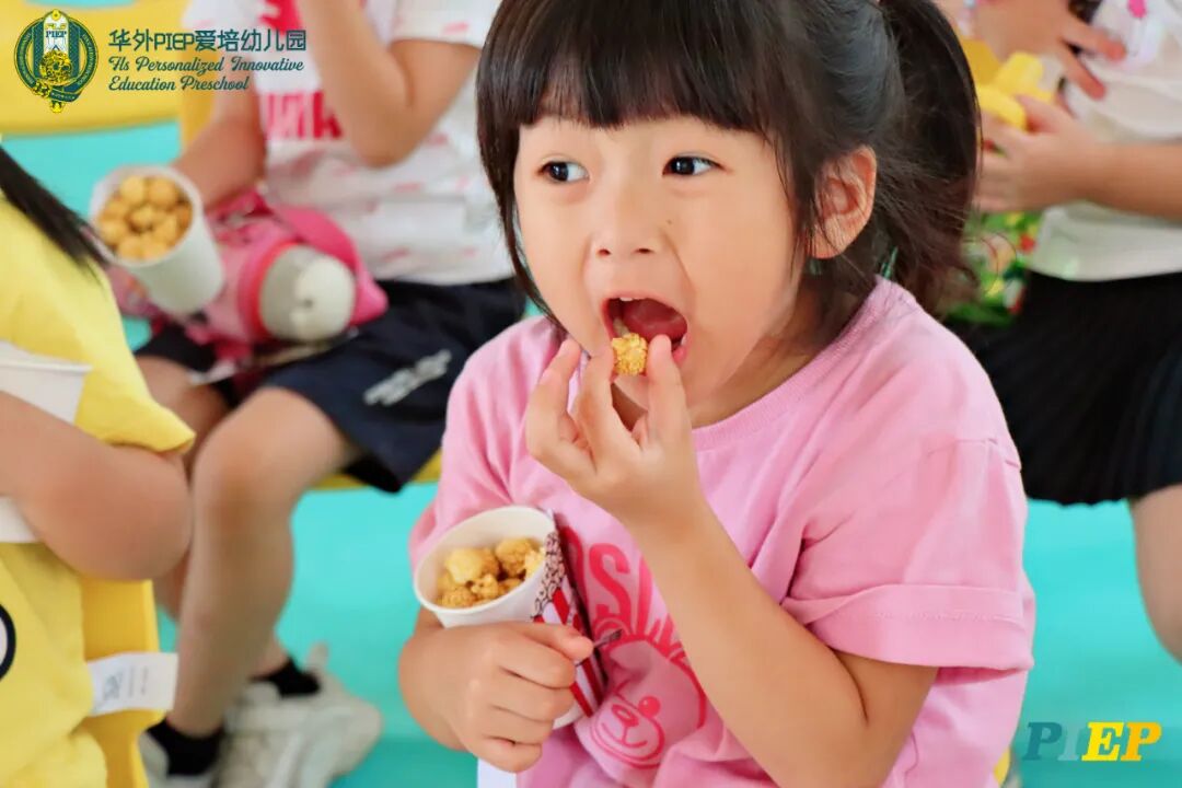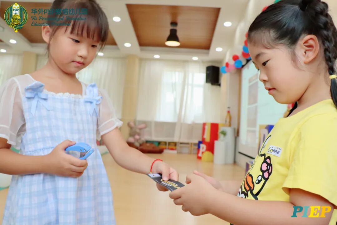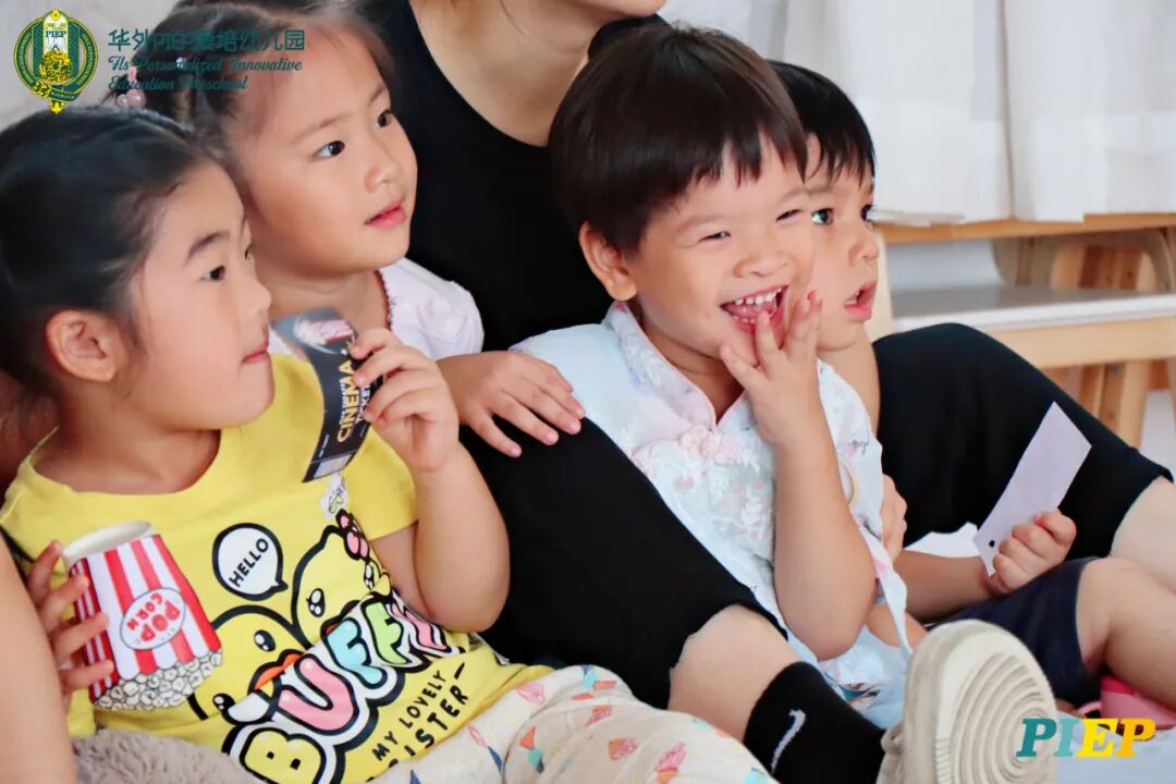 夏令营里,老师们还巧思布置了PIEP电影院。来了一场观影盛宴,孩子们就像大人一样结伴进入影院,取票,检票,购买爆米花,对号入座进行观影!宝贝们完全投入到电影情节里,时而皱眉,时而大笑,还津津有味的吃着手里的爆米花。