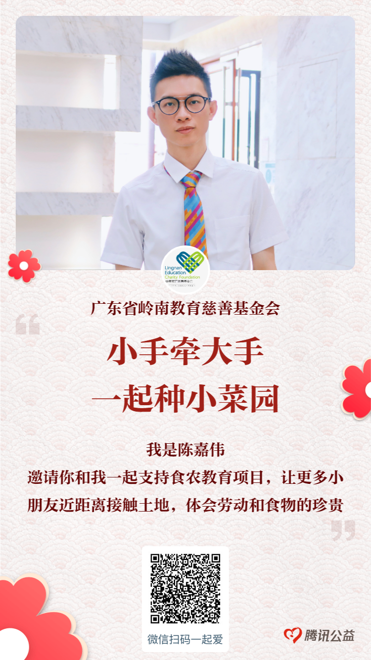 2021年99公益日,广东省岭南教育慈善基金会发起“小手牵大手种小菜园”99公益项目,结合“广州城市小菜园工程”的倡导,支持大学生牵手社区、家庭和学生,协力推广都市小菜园。