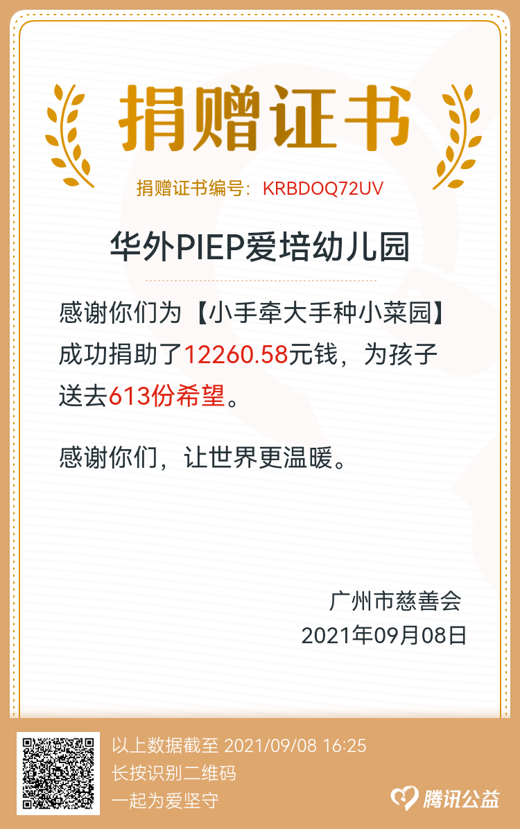 PIEP已助力“小手牵大手种小菜园”99公益项目,