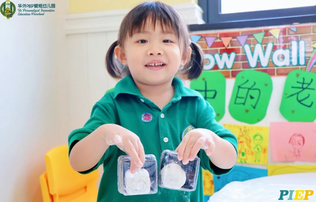 孩子们通过亲自动手参与做月饼,亲身感受和体验中华民族文化的丰富和多样性,展现出浓浓的中秋团圆之情。一块块月饼变成了一个个幸福的笑脸,传递美好的心情,温暖你我的心。