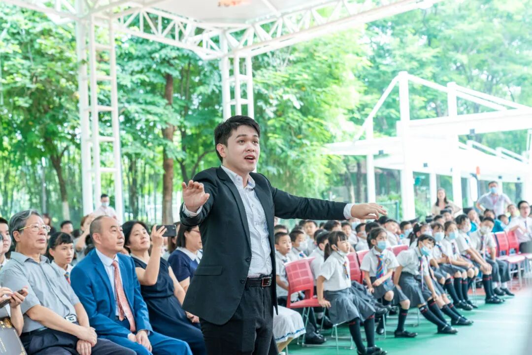 现场华师外校副校长任怀柱做主题为《弘扬国粹 以礼修身》的分享,希望同学们践行学校文明礼仪的要求,为成为全面发展、特长突出的时代新人和世界公民奠定文明修身的基础。