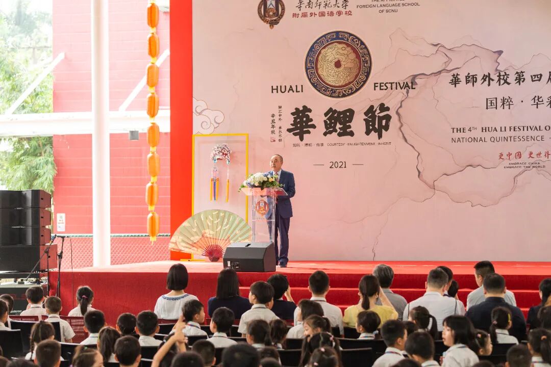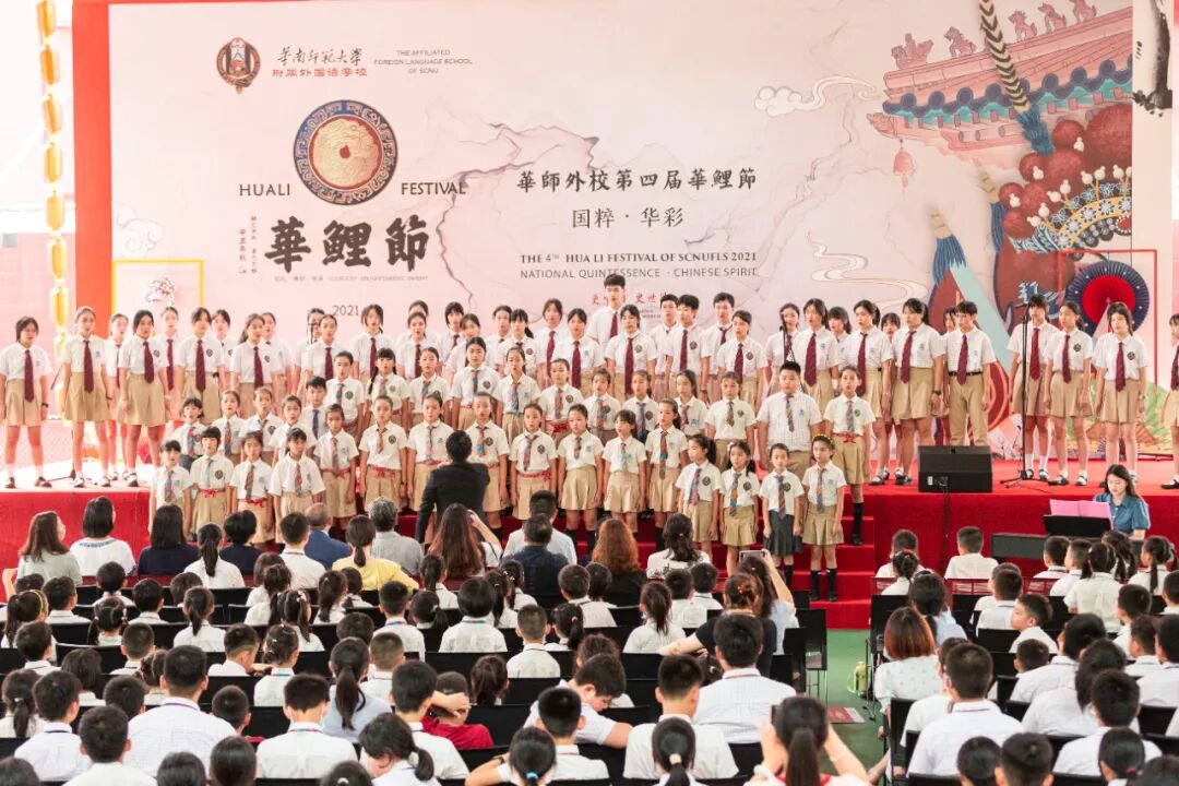 9月28日是孔子诞辰纪念日,也是华师外校第四届華鲤节隆重开幕的日子,华南师范大学附属外国语学校各学部教师代表、2021年秋季新生、2021届毕业生及家长代表等出席了典礼现场,同时其他年级学生在教室收看现场直播或回放。