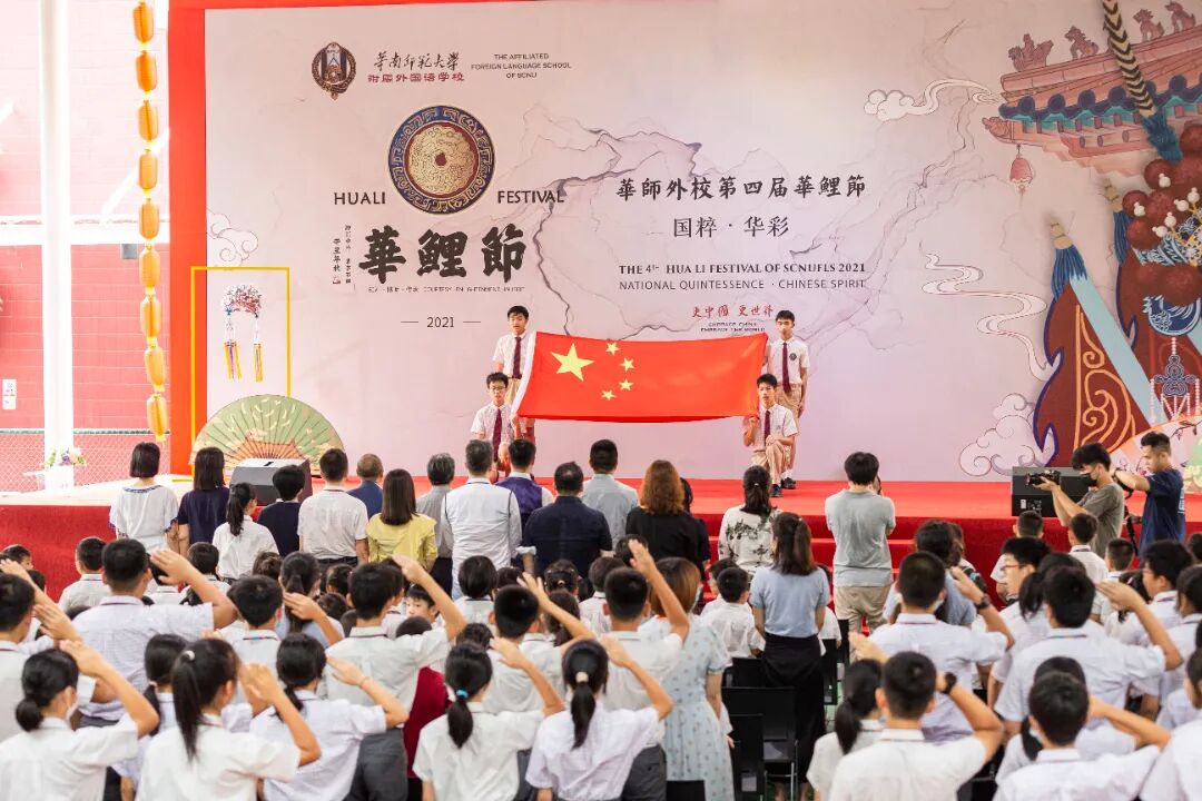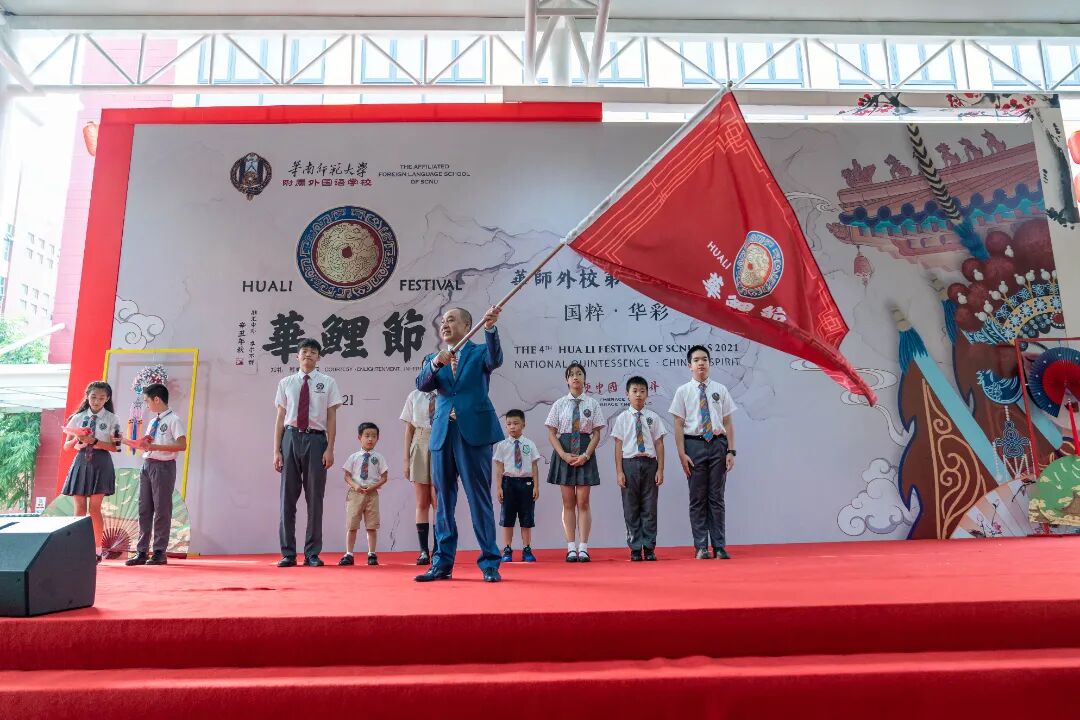华鲤旗授旗仪式由任怀柱校长向学生授予华鲤旗,挥动的“华鲤旗”意味着今年的华鲤节正式开幕,希望全校学生通过华鲤节中的系列活动,学习礼仪文化,让礼仪之花,开满华外校园。