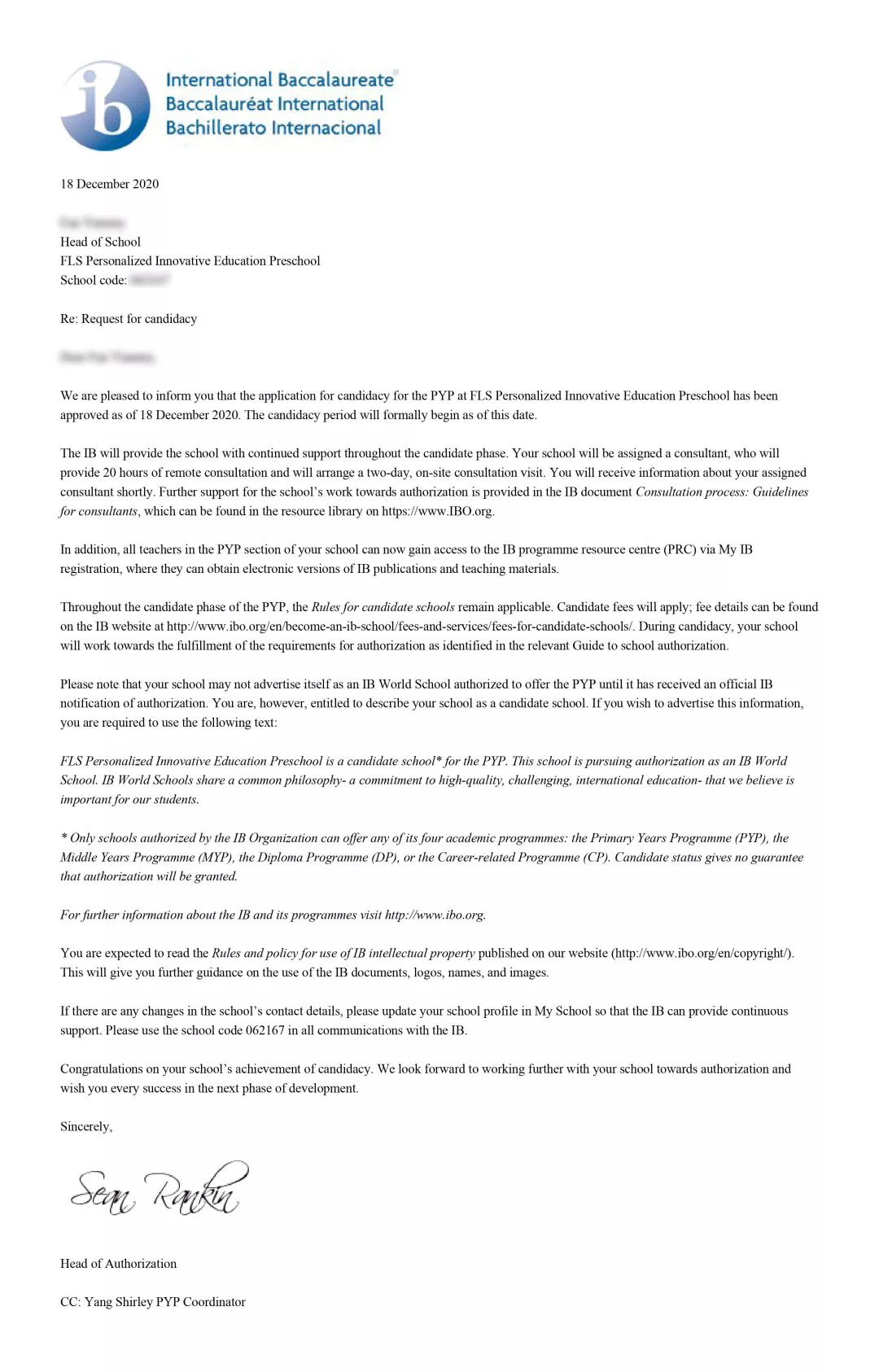 华外PIEP爱培幼儿园介绍 PIEP Introduction 华外PIEP爱培幼儿园(FLS Personalized Innovative Education Prschool)是专为2.5~6岁儿童打造的现代化、国际化的高端学前教育项目。并于2020年12月收到国际文凭组织的官方授权函,由此正式成为IB候选幼儿园。 △PIEP经IBO的官方确认,正式成为IB-PYP候选幼儿园 PIEP与广州同文教育集团旗下华南师范大学附属外国语学校的CEP小学、初中、IEP国际项目(IB授权学校)、IHP国际高中等优质教育紧密结合,与CEP/IEP小学无缝衔接,利用优质的教学资源,为学生提供15年一贯制教育服务。 PIEP秉承“启发潜能、培育全人”的办学宗旨,突显“更中国、更世界”的办学特色,以“探索成为中国学前教育改革创新的领跑者”为己任,铭记“融汇中外,卓尔不群”的校训,培养全面发展、特长突出的时代新人和世界公民,保证孩子未来在此成长。 华外爱培幼儿园采用IB课程理念:培养勤学好问、知识渊博、富有爱心的年轻人,他们通过对多元文化的理解和尊重,为开创更美好、更和平的世界贡献力量。 IB项目鼓励世界各地的学生成长为既积极进取又富有同情心的终身学习者,他们理解尽管人与人之间存在着差异,但他人的意见也可能是正确的。为此,PIEP突出外语、以探究式学习,品格与体能为基础的全人教育理念,希望孩子成为有原则、富有同情心、心胸宽广、全面发展的人。 △教学环境 升学路径 Diverse development CEP双语中小学部 (1-9年级) 以国家课程为主,融合先进国际教育理念。在高效完成国家义务教育阶段规定的语文、数学、英语、艺体类等课程的同时,开设国际融合课程和大量校本选修课程,突出学生全面发展和个性化发展。 班额:30人左右/班 创新融合部I-EP中小学部 (1-9年级) 获得IB(国际文凭课程)PYP&MYP授权认证,提供高质量融汇中外的全人教育。融合国家课程与国际文凭课程(IB)。课程由必修课程,选修课程及学年特色课程(财商/公益/户外坚毅)组成,为不同语言背景的学生提供中英文语言支持。 班额:24人左右/班 IHP国际高中部 (9-12年级) 作为美国顶尖公立特许学校——德州国际领袖学校广州校区,课程获得权威学术机构Cognia认证,学生毕业获得美国高中文凭,并可修读美国大学理事会授权的AP课程。学生通过丰富多彩的课外活动以及专业的升学指导,获得个性化背景提升,最终获世界顶尖大学录取。 班额:25人/班 △丰富的校园活动 2022春季招生招生计划 Enrollment Plan 1.Mini:1个班 2.Alpha:1个班 3.中大班少量插班生学位 (2.5-6岁身心健康的适龄儿童,不限国籍、户籍) 报名资料 Registration information 1、幼儿户口本复印件一份(首页、父母页、孩子页); 2、幼儿出生证复印件一份; 3、父母身份证复印件各一份; 4、幼儿体检表含保健手册原件; 5、幼儿预防免疫接种证原件; 6、幼儿、家长(含最多四位接送人)小一寸证件照片电子版上传至信息采集表后台。 注意事项 关于体检、注册及其他事宜另行通知,体检合格者方可入园。 招生咨询 Contact information 幼儿园咨询电话 020—89852080 13048012371 联系人:胡老师 END
